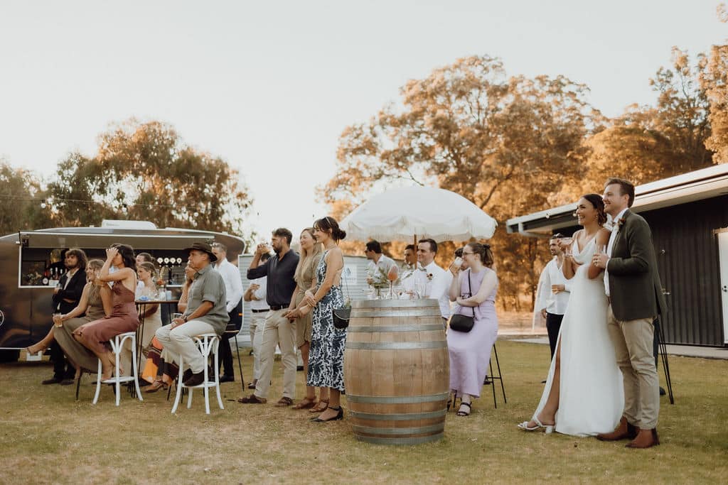 The goal is to make it all feel effortless. Guests should be sipping drinks, laughing, and celebrating with you, not swatting flies or regretting their shoe choice. Here’s how to make sure everyone stays relaxed, comfortable, and fully enjoys your bush wedding in Dwellingup.